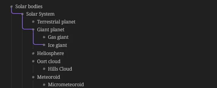 Use the cssclass bullet-threading to add a thread between bullet points in your lists when hovering them in preview (reading) view.